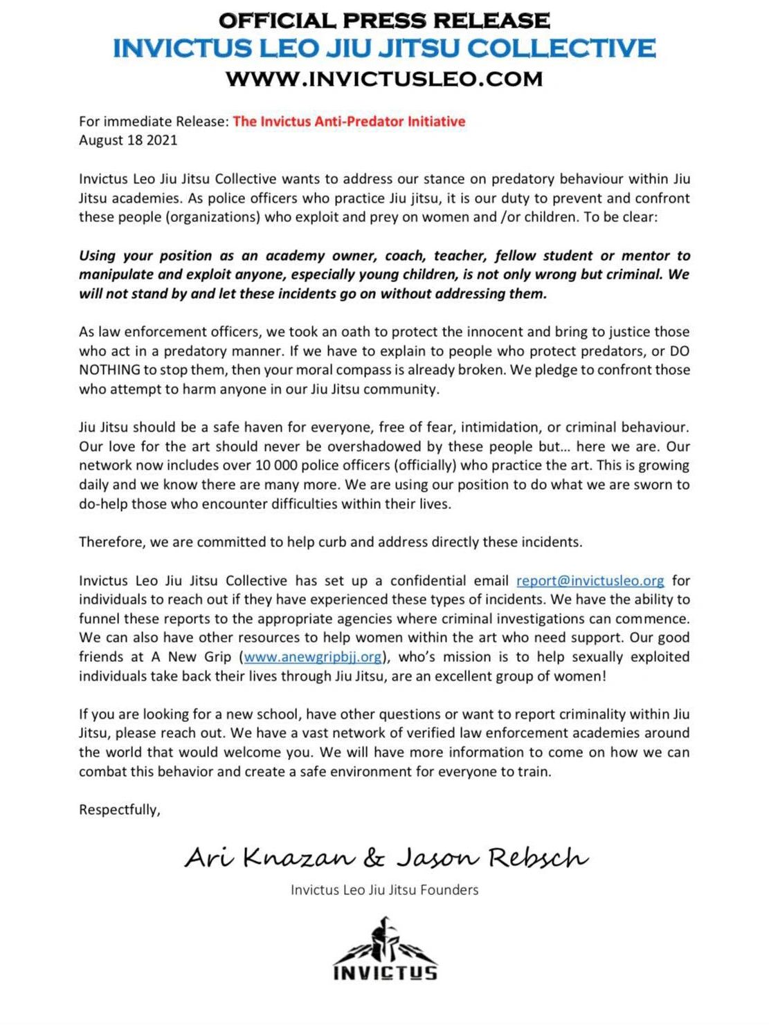 The Official Website of Invictus Law Enforcement Jiu Jitsu Collective